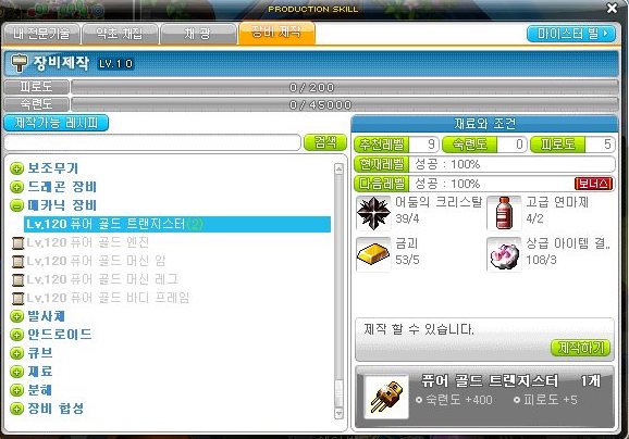 제작을 하면 숙련도 400과 피로도 5가 소비된다.
