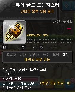 퓨어 골드 트랜지스터는 메카닉 직업군만 사용할 수 있는