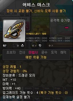 어비스 마스크는 에반이 데리고 다니는 드래곤이 장착하는 장비템이다.