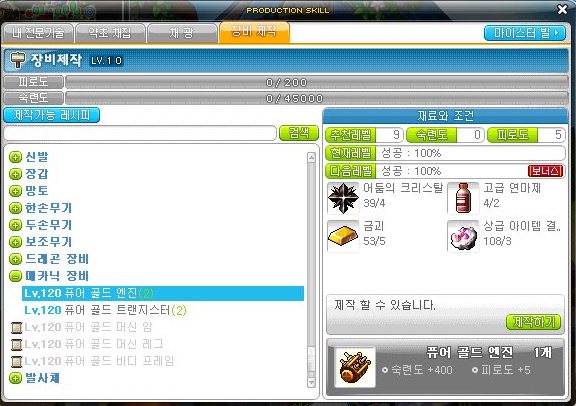 제작을 하면 숙련도 400과 피로도 5가 소비된다.