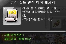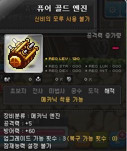 퓨어 골드 머신 엔진은 메카닉 직업군만 사용할 수 있는