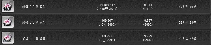상급 아이템 결정은 개당 약 9천 메소이다.