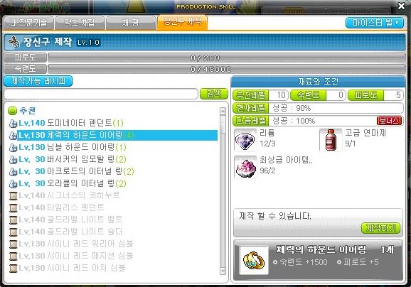 제작하면 숙련도 1500과 피로도 5가 소비된다.