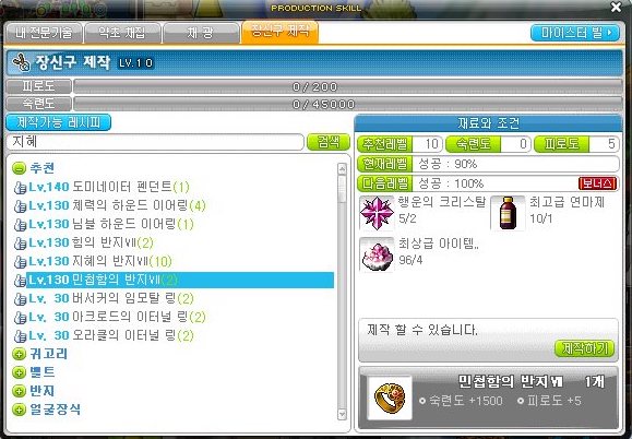 제작하면 숙련도 1500과 피로도 5가 소비된다.