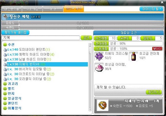 참고로 장신구 제작 10레벨 기준으로 성공률이 90%이다.
