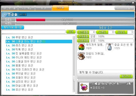 오늘은 스페셜 마노 변신 포션을 제작해 보도록 하겠다.