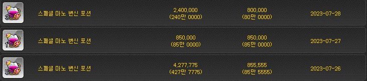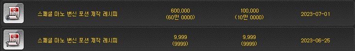 [메이플스토리] 스페셜 데우 변신 포션 제작 (재료, 가격)