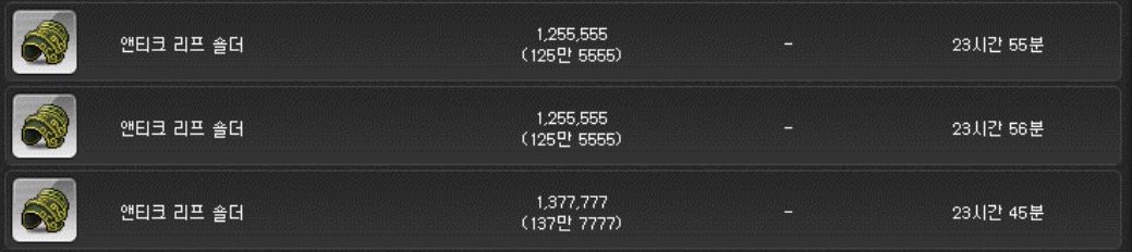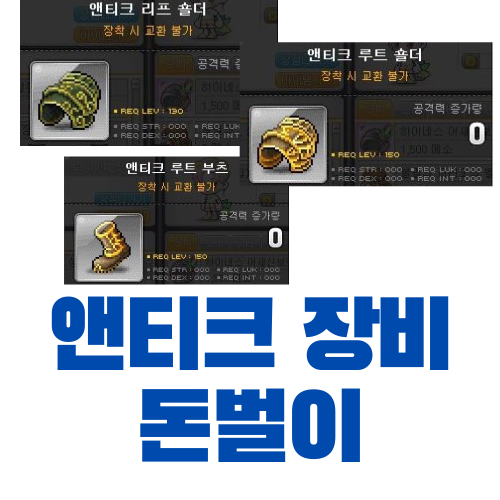 여기서 앤티크로 시작하는 장비들을 구매하면 된다.