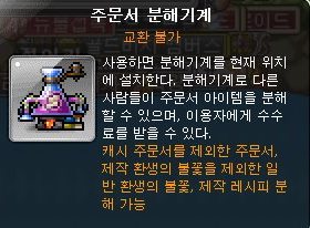 수수료가 1메소인 경우에만 이용하길 바라고, 주문서 분해기가 비주류 분해기인지라 없을 수도 있다.