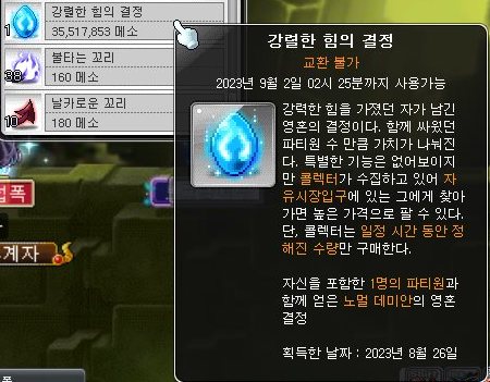 노말 데미안 솔격 결정석 가격은 약 3550만 메소이다.