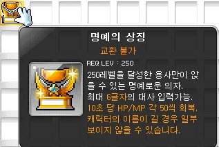 250레벨에 받을 수 있는 명예의 상징 의자를 받아주었다.