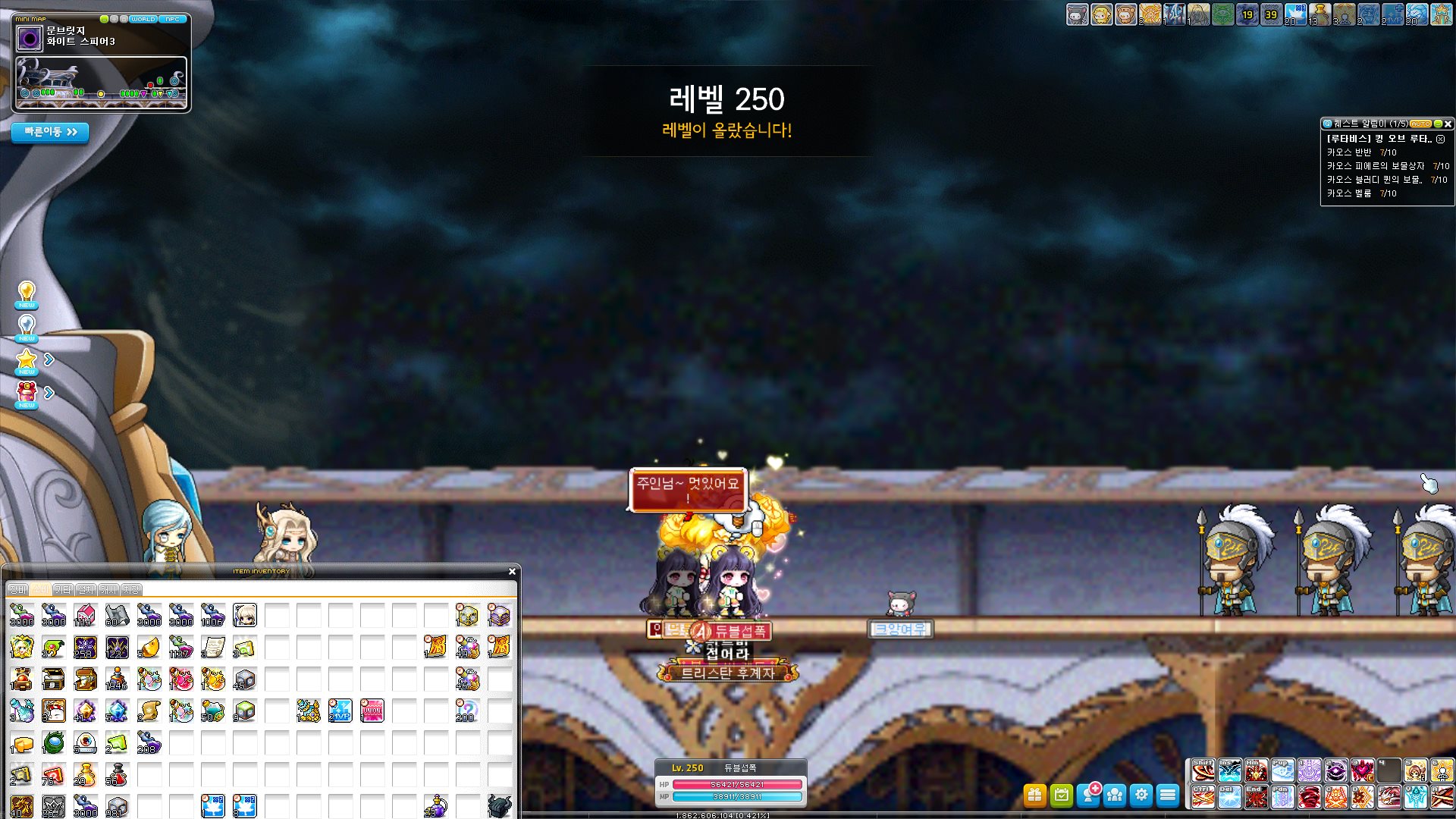 마침내 250레벨을 찍었다. 참고로 버닝캐도 아니라서 1업씩 한거다.