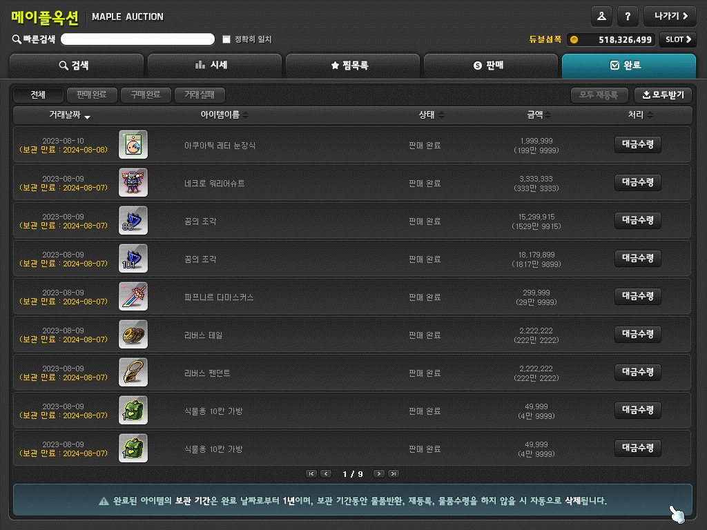 메이플스토리 꿈의 조각 사재기를 통한 돈벌이