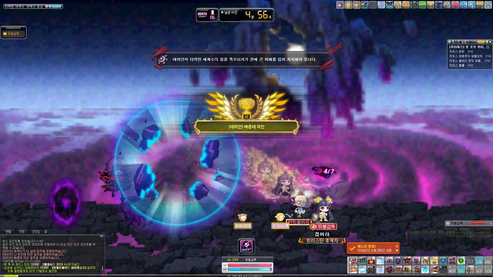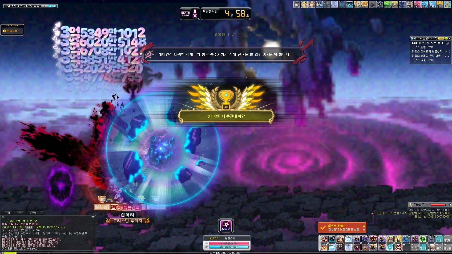 5분 안에 데미안 잡으면 얻을 수 있는 업적인 빠른데 미안도 얻어주었다.