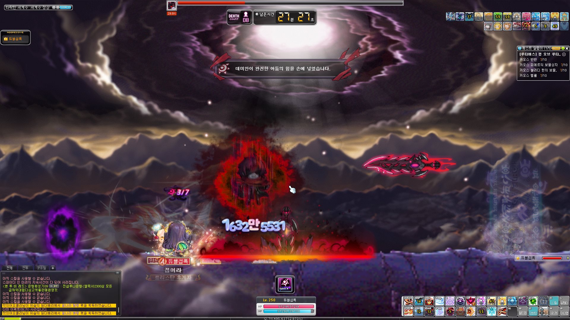 확실히 노말 스우보다는 노말 데미안이 잡기 힘들다는 것을 보여주는 부분이다.