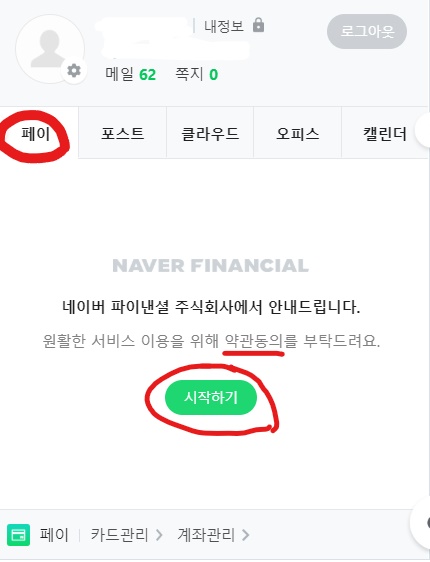 네이버페이를 들어갈 때 동의창이 뜨지 않았다면