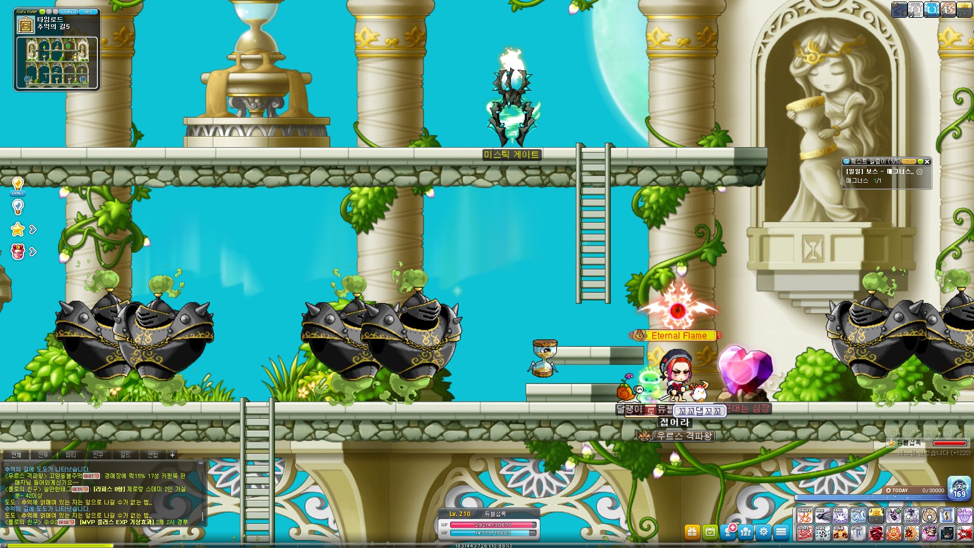 시간의 신전 자체가 길 뚫기 퀘스트 때문에 사냥하는 사람이 많아서 엘리트 보스가 굉장히 자주 뜬다. 때문에 몬스터를 잡다가 엘리트 보스가 떴다는 문자를 본다면 바로 달려가길 바란다.