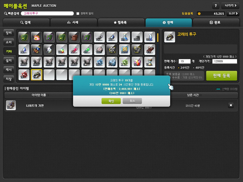 루나 서버 기준 '고래의 투구' 개당 13만 메소 / '나이트의 가면' 개당 23만 메소 / '수호수의 뿔' 개당 8만 메소