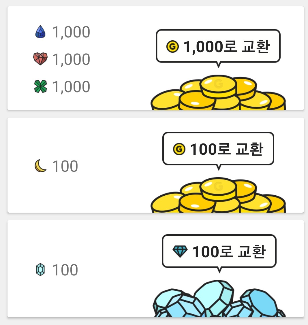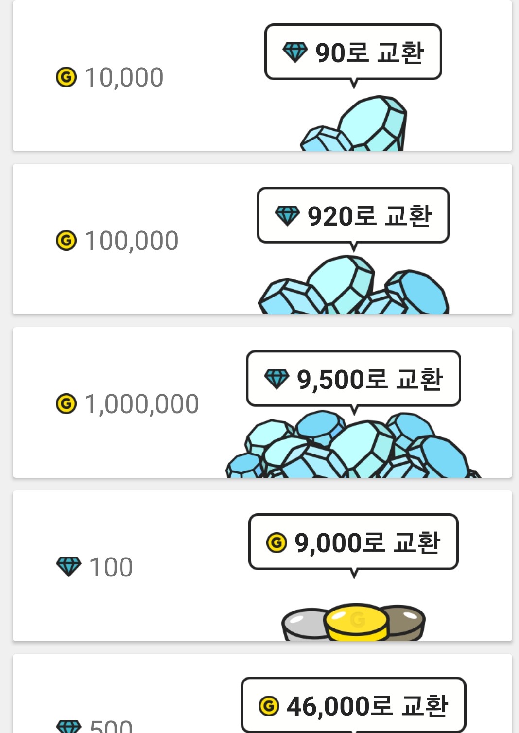현금 출금이나 상품권 구입에는 다이아가 쓰인다.