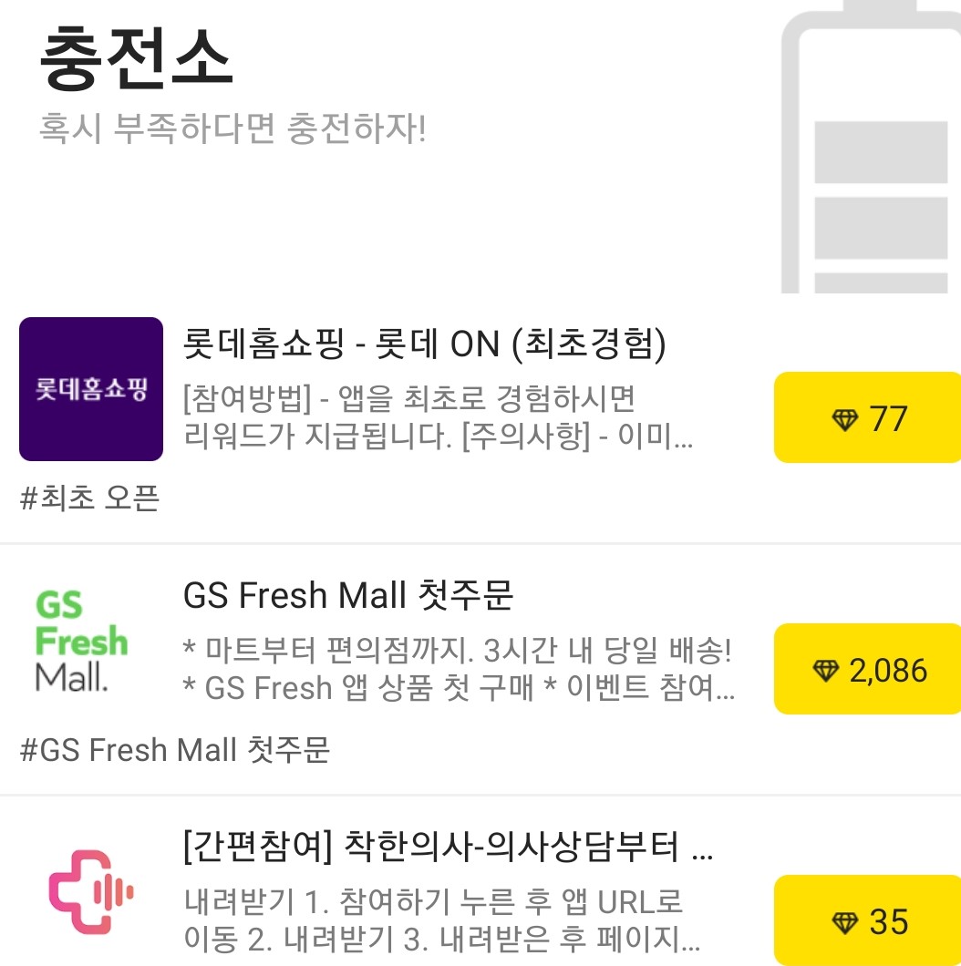 여타 다른 돈 버는 앱과 같이 충전소가 존재하며