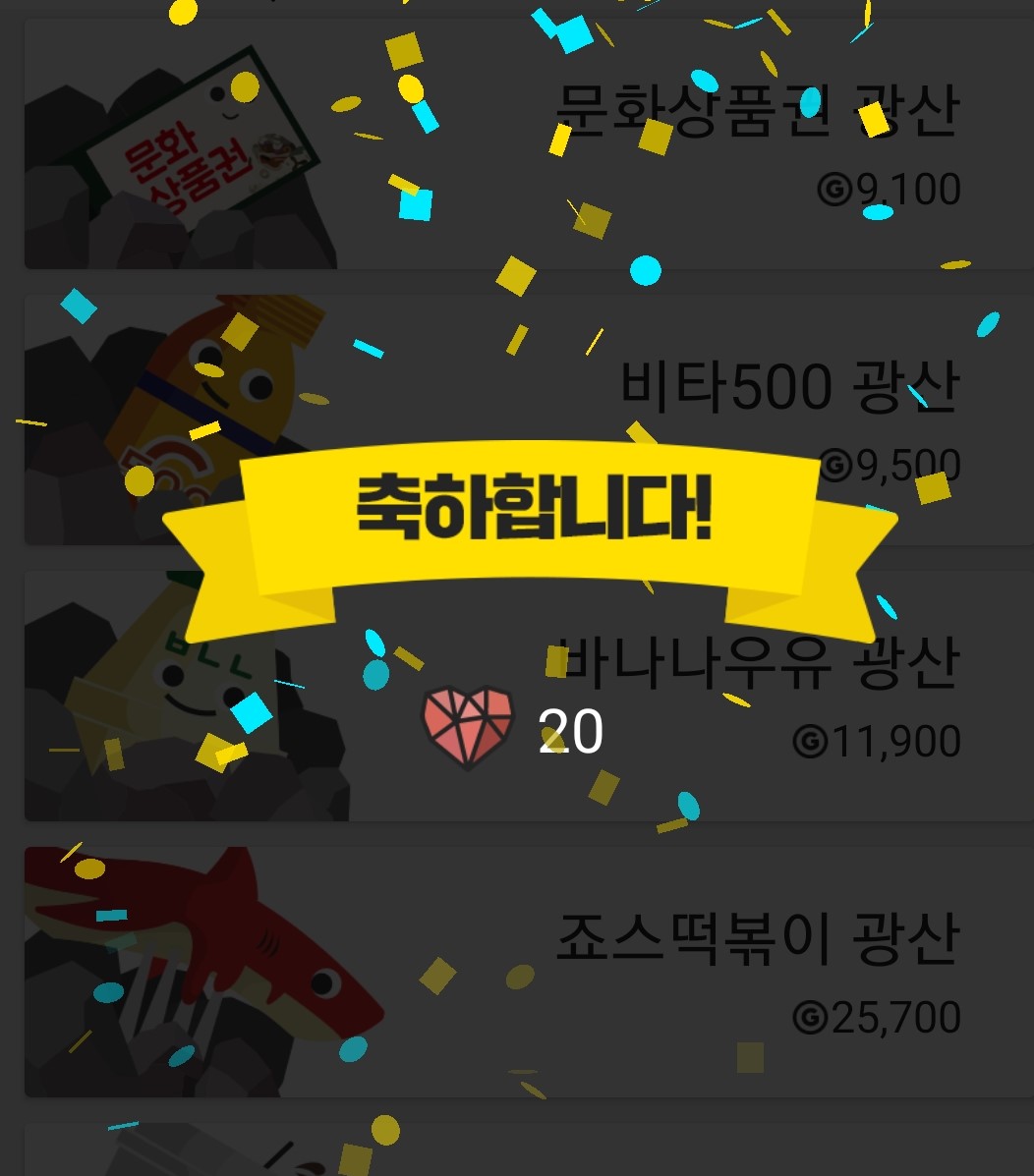 쿠폰은 무슨 광물을 주면서 축하한다고 한다.