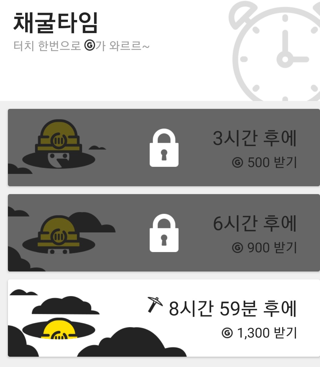 3, 6, 9 시간 후에 골드를 받을 수 있는 기능이다.