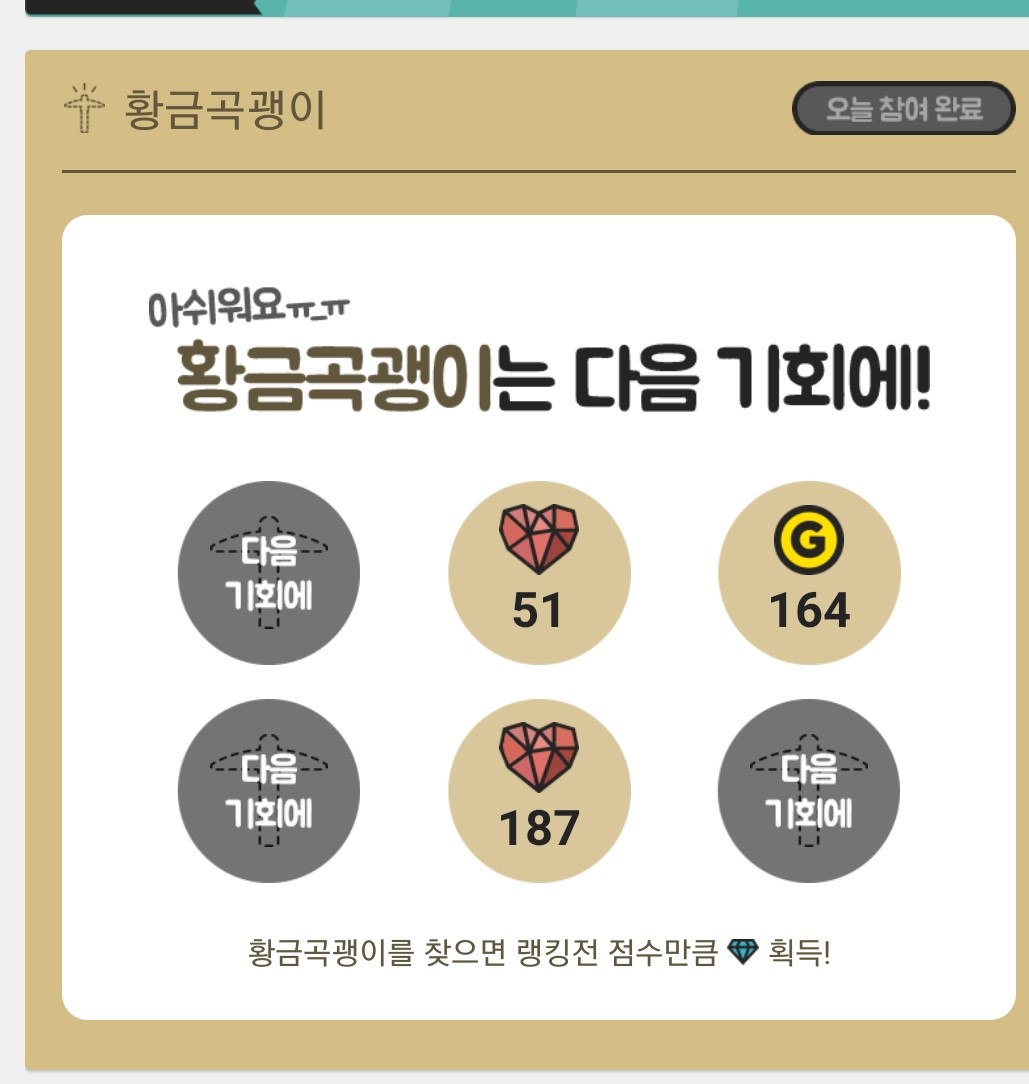 황금곡괭이는 뒤에 나올 랭킹전에 사용된다.