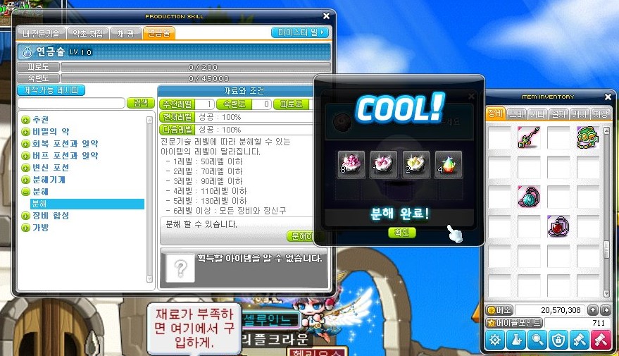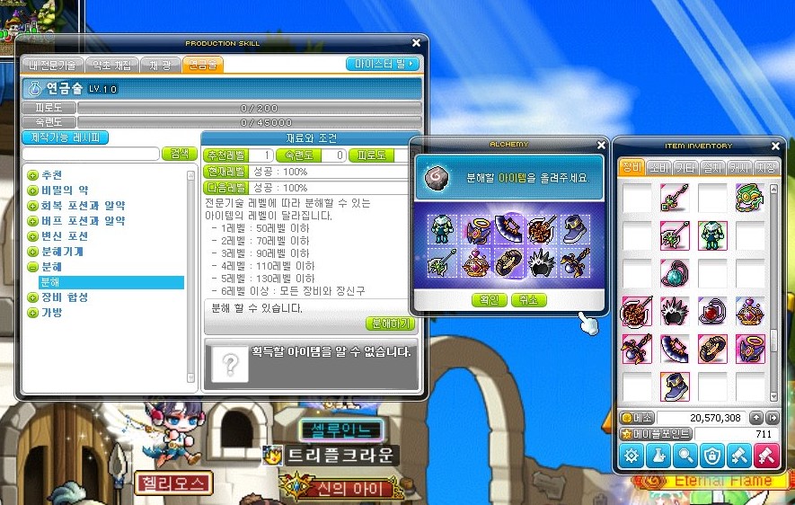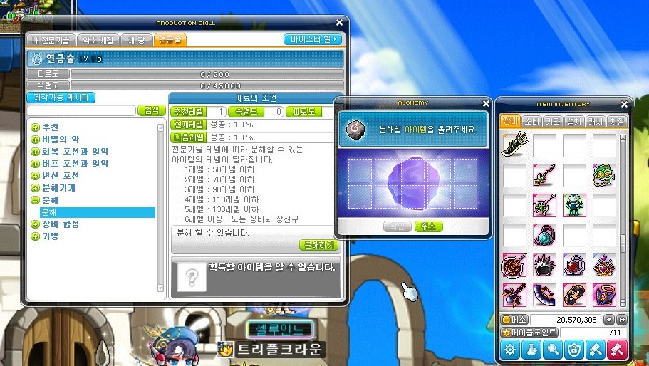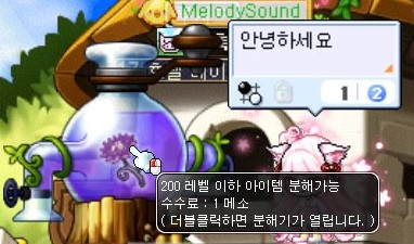 1메소짜리 필요 없는 장비들만 남겨 두었다면 이제 아이템 분해를 시작해야 한다.