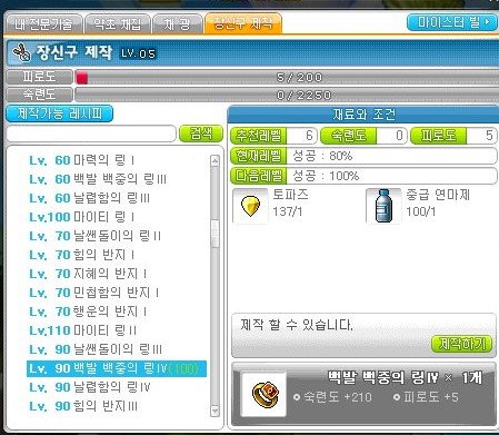 메이플스토리 장신구 제작 장인 하루만에 가기 (만든 물품, 팁)