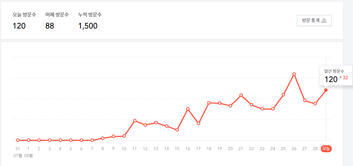 내가 블로그를 처음 시작한 때가 8월 7일이었다.