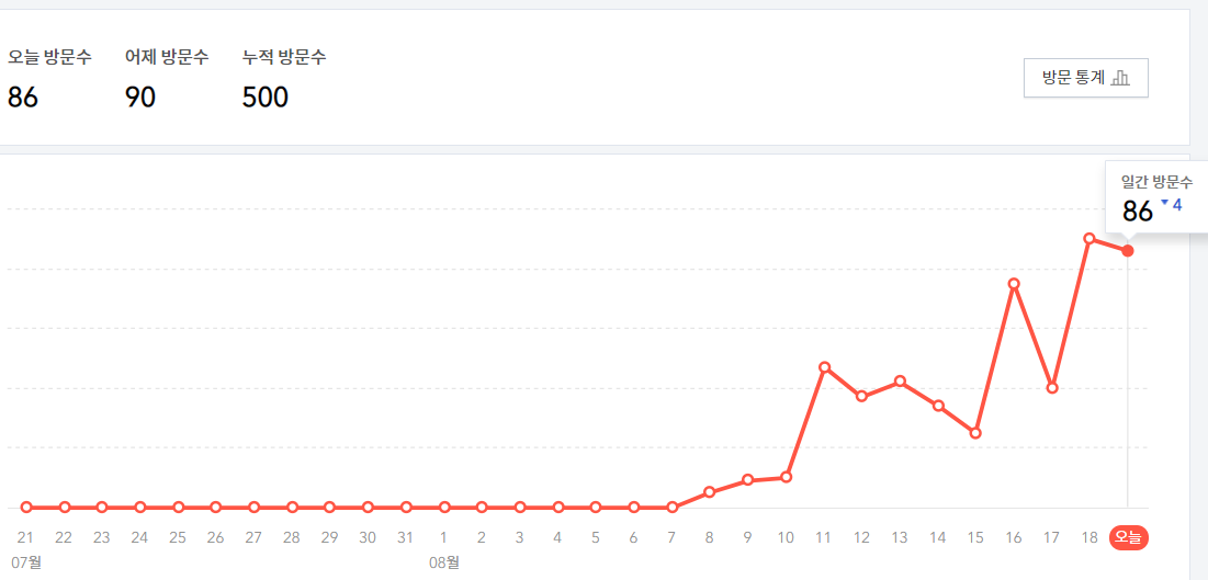 블로그 시작 12일 후에 누적 조회수 500을 달성했고,