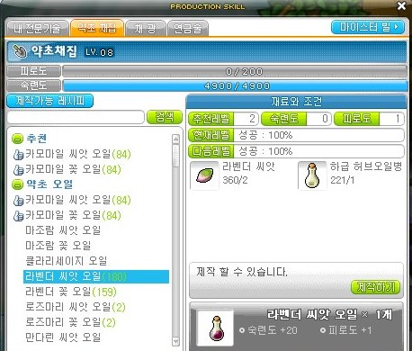 라벤더 씨앗 2개와 하급 허브오일병 1개가 필요하다.