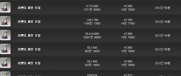 라벤더 씨앗 오일의 시세는 개당 4만 7천메소.
