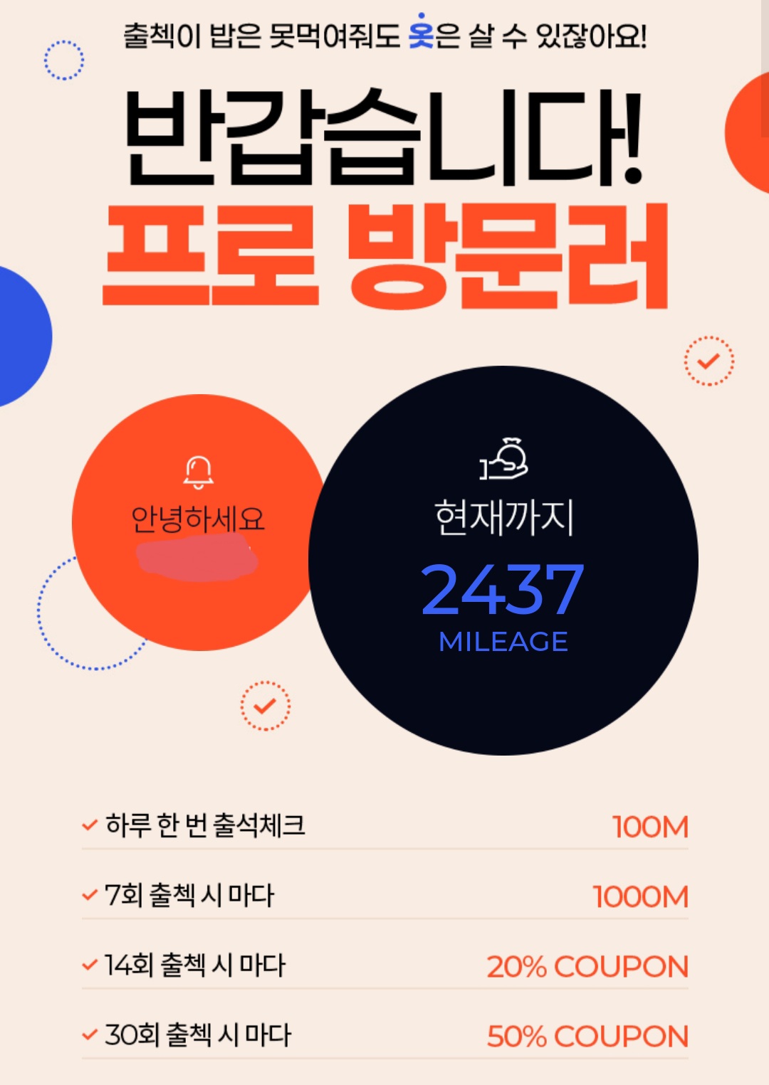 또한 출석체크 일수에 따라 할인쿠폰을 얻을 수 있다.