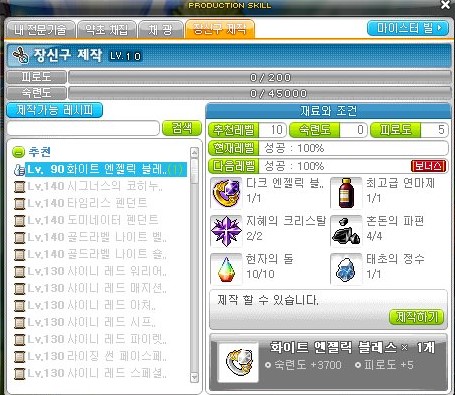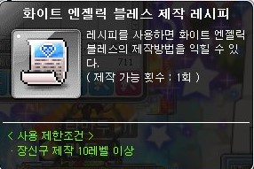 오늘은 아주 옛날 쪼렙 템의 꽃, 엔젤릭 블레스와 다크 엔젤릭 블레스를 만들어볼 것이다. 레시피는 그냥 구매했다. 엔젤릭 블레스 제작 레시피 - 100만 메소 다크 엔젤릭 블레스 제작 레시피 - 900
