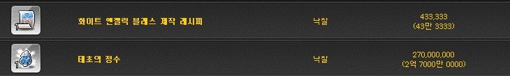화이트 엔젤릭 블레스가 비싼 이유인 태초의 정수를 2억 7천만 메소에 구매하였다.