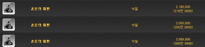 혼돈의 파편은 개당 약 200만 메소 정도에 구매했다.