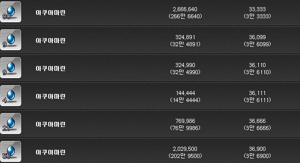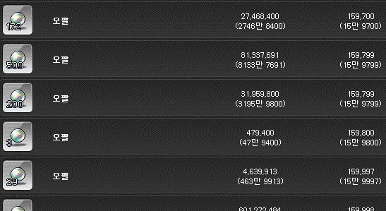 은괴와 오팔의 가격은 보통 15~16만 메소이다.