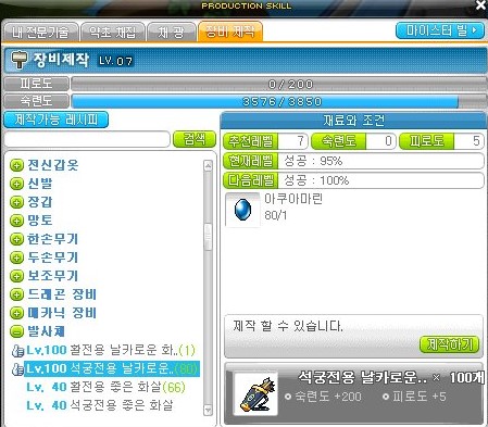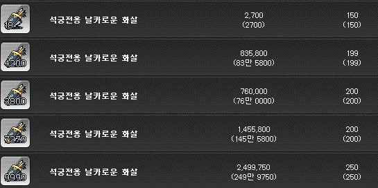 만든 화살은 150메소이다. 한 번에 100개가 만들어지니 1만 5천 메소인 셈이다.