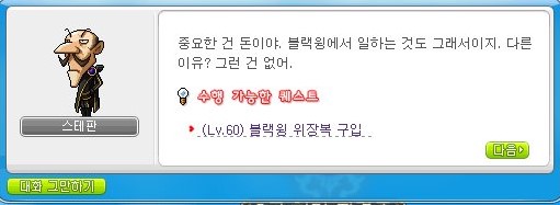 그리고 다음에 '블랙윙 위장복 구입' 퀘스트를 받아준다.