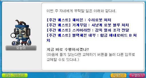 뭔가 모으라는 퀘스트면 아래 교체하기 버튼을 눌러 교체해주면 된다.