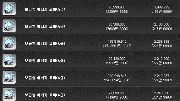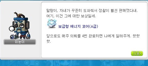 보급형 에너지 코어는 앱솔랩스 장비를 구매하는 코인으로 교환하는 물품 중 하나이다.