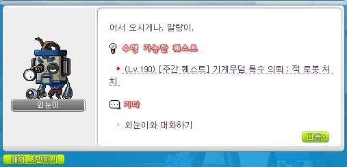 190레벨이 되면 퀘스트가 하나 올 것이다.