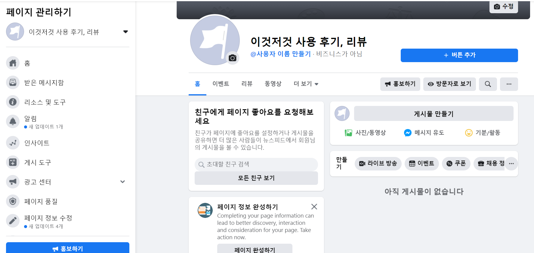 프로필 사진을 굳이 바로 설정하지 않아도 이렇게 페이지가 만들어진다.