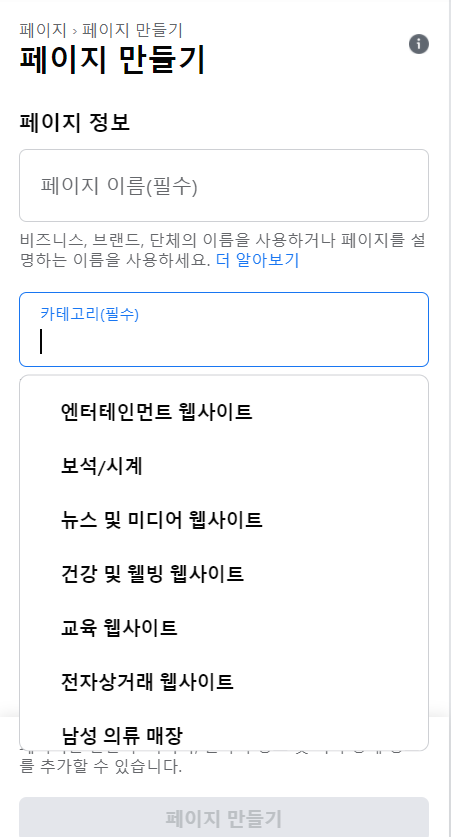 이런 페이지로 이동하게 된다. 이제 페이지 정보를 입력하면 된다.