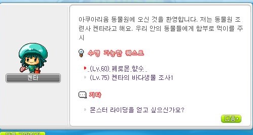 다시 켄타를 눌러서 맨 아래 기타 부분에 '몬스터 라이딩을 얻고 싶으신가요?'를 눌러준다.