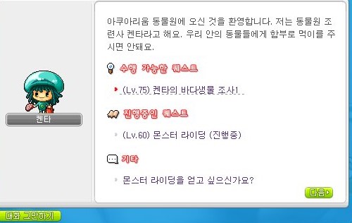 그리고 다시 켄타를 눌러서 아래 기타 부분에 '몬스터 라이딩을 얻고 싶으신가요?'를 눌러준다.