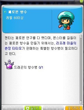 이전 퀘스트를 완료하고 '페로몬 향수' 퀘스트를 받아준다.