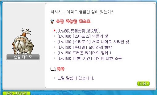 맨 위 '드래곤의 향수병' 퀘스트를 받아준다.