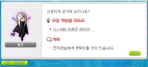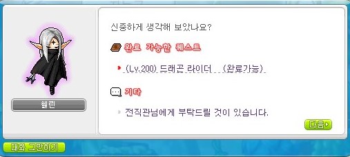 아무튼 '드래곤 라이더' 퀘스트를 받아준다.